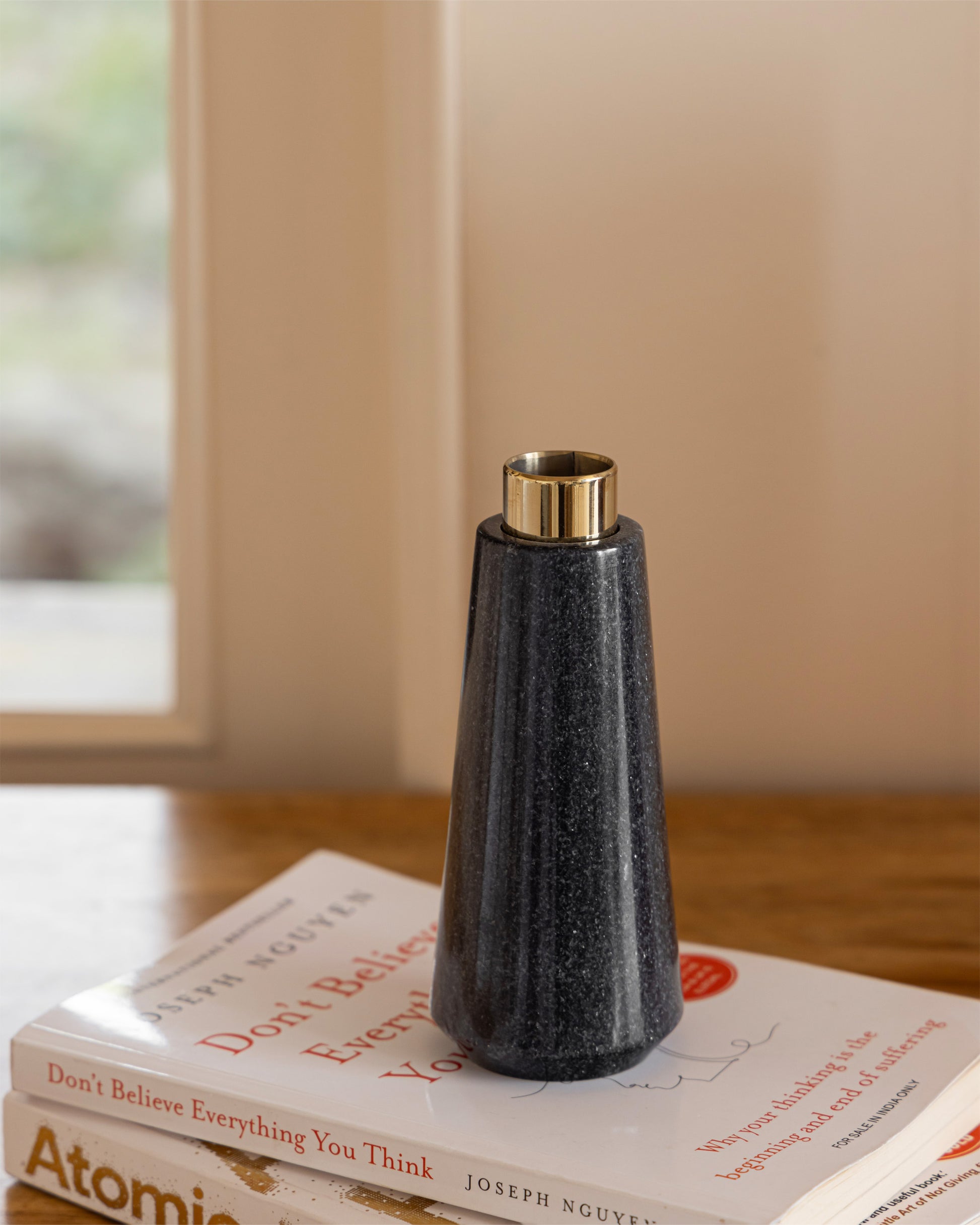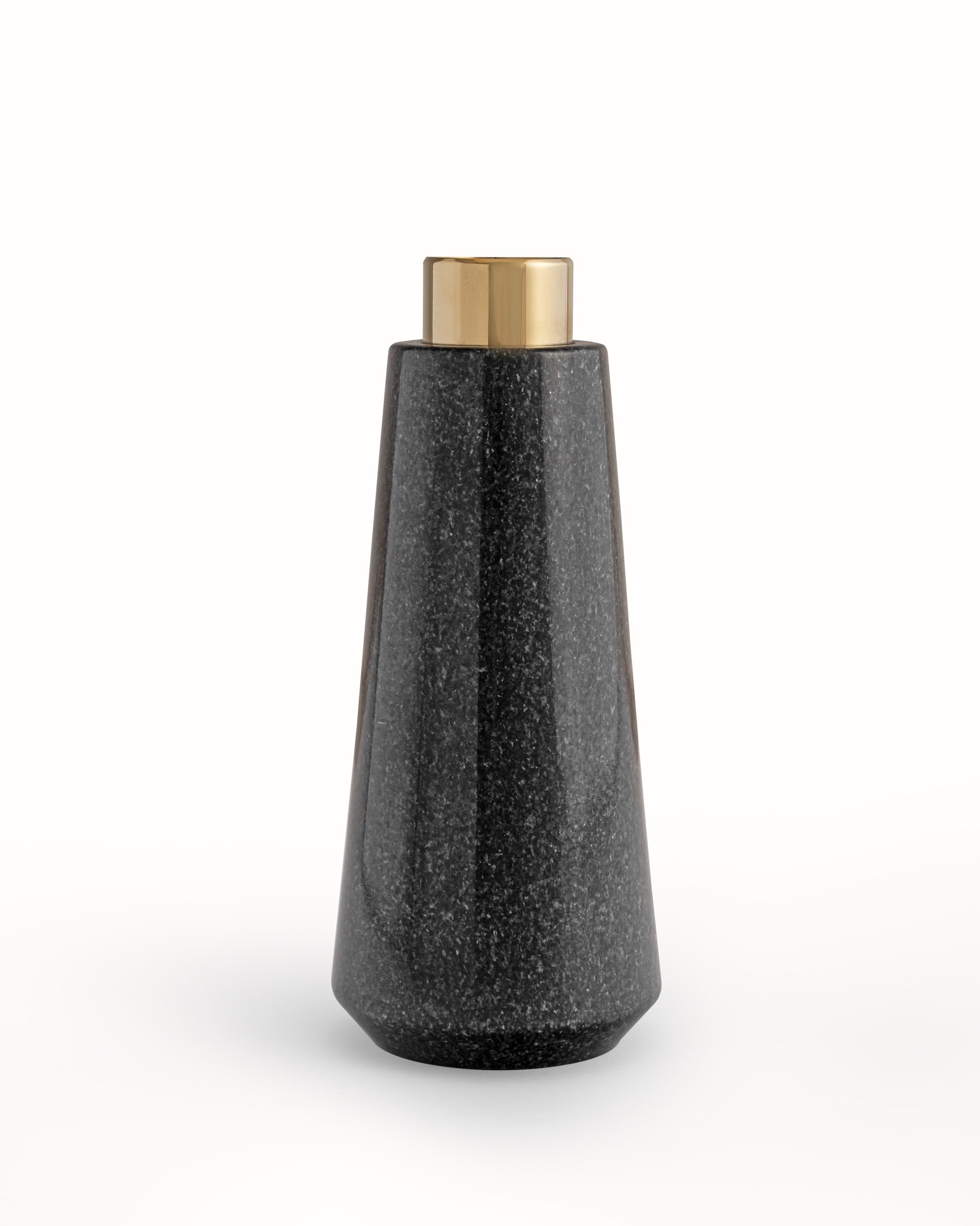 Add a touch of elegant freshness to any space with our luxurious black Bud Vase. Made with a unique blend of stone and metal, this stunning vase is perfect for showcasing fresh blooms in any corner of your home. Keep your flowers fresh and blooming by filling it with water. Elevate your home decor with this enduringly alluring piece.