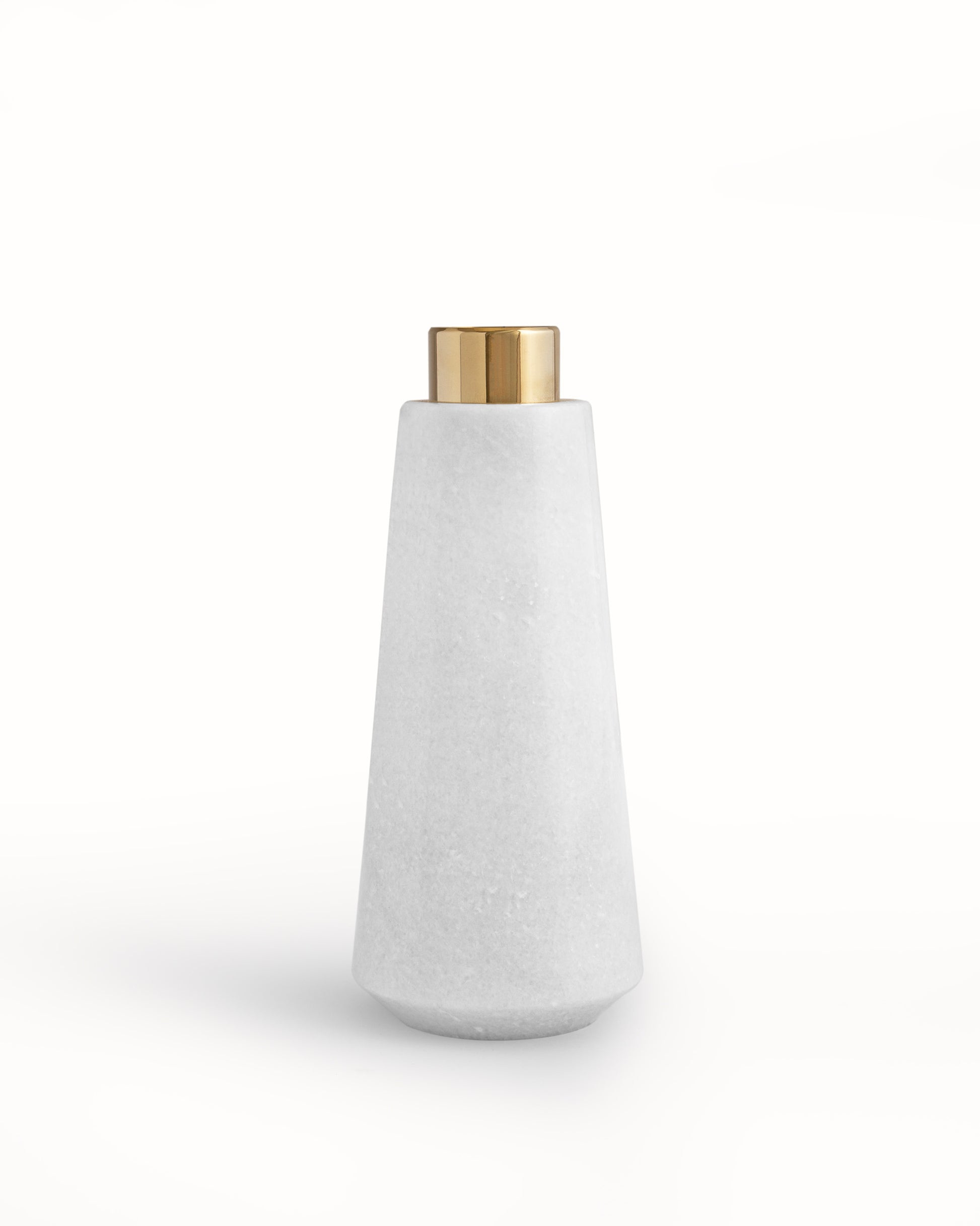 Add a touch of elegant freshness to any space with our luxurious black Bud Vase. Made with a unique blend of stone and metal, this stunning vase is perfect for showcasing fresh blooms in any corner of your home. Keep your flowers fresh and blooming by filling it with water. Elevate your home decor with this enduringly alluring piece.