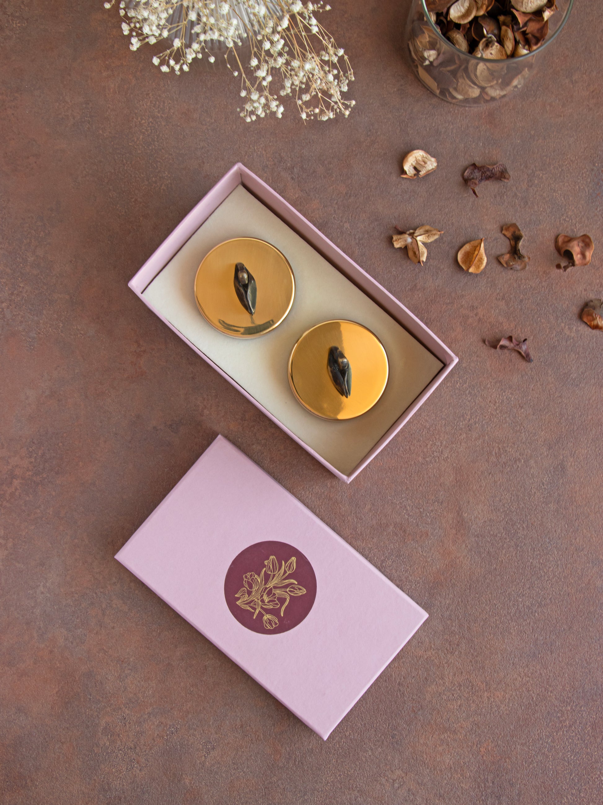 Finish: Antique finish knob and brass gold lid.