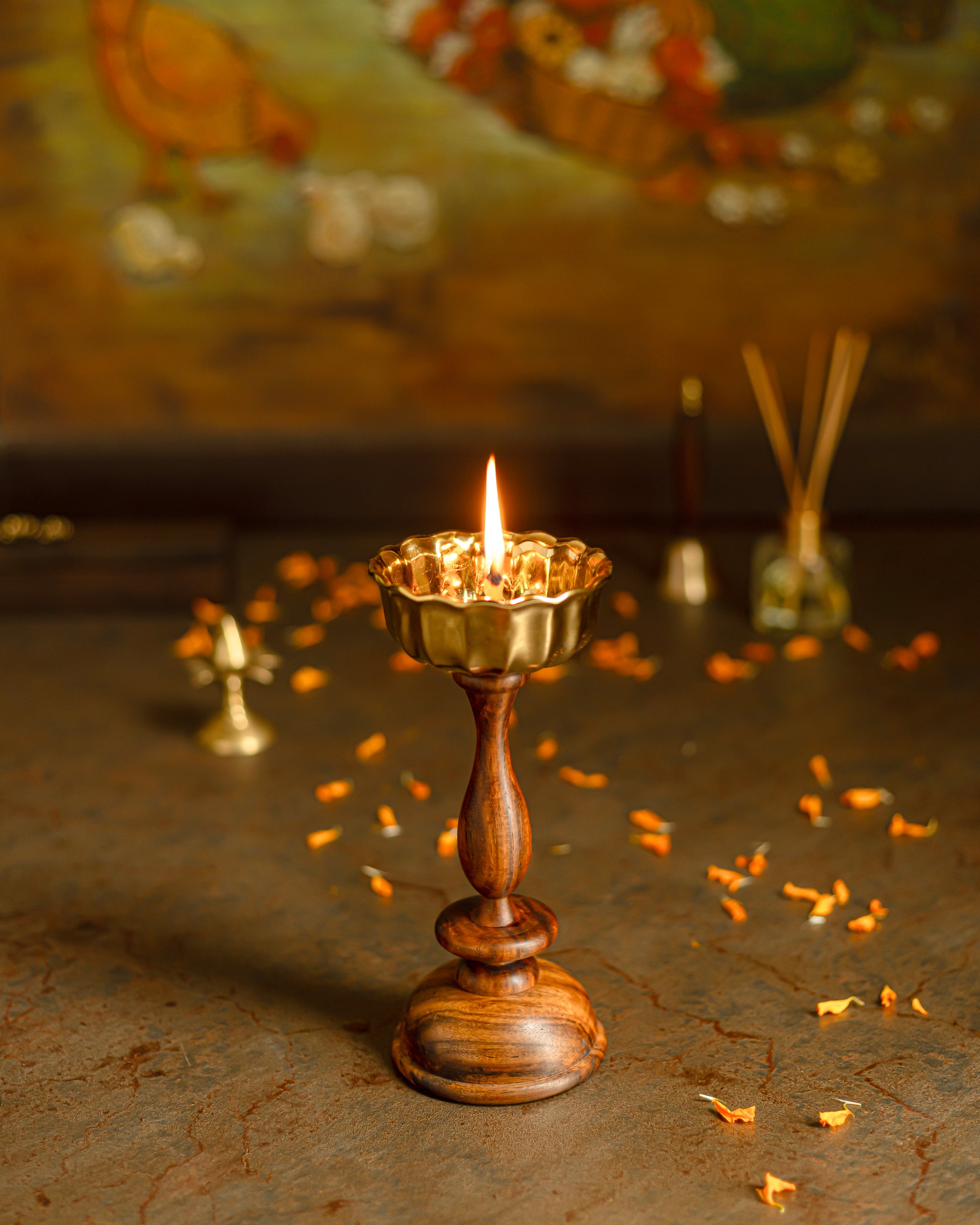 Infuse your home with warmth and tranquility using the elegantly designed Dipam - White Oak (Big) brass oil lamp. Inspired by festival traditions and temple architecture, its distinctive design includes a separate wick holder that prevents oil leakage.