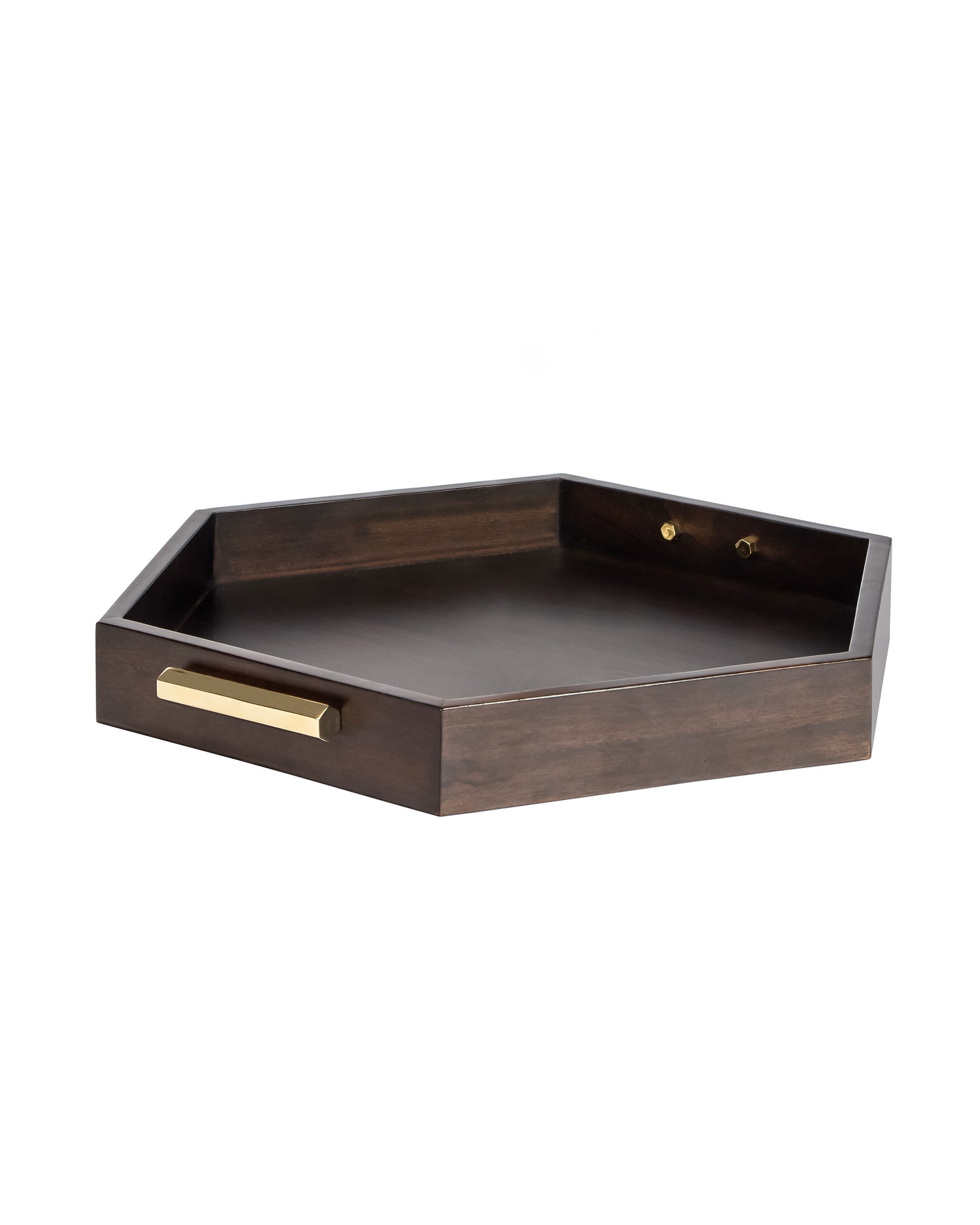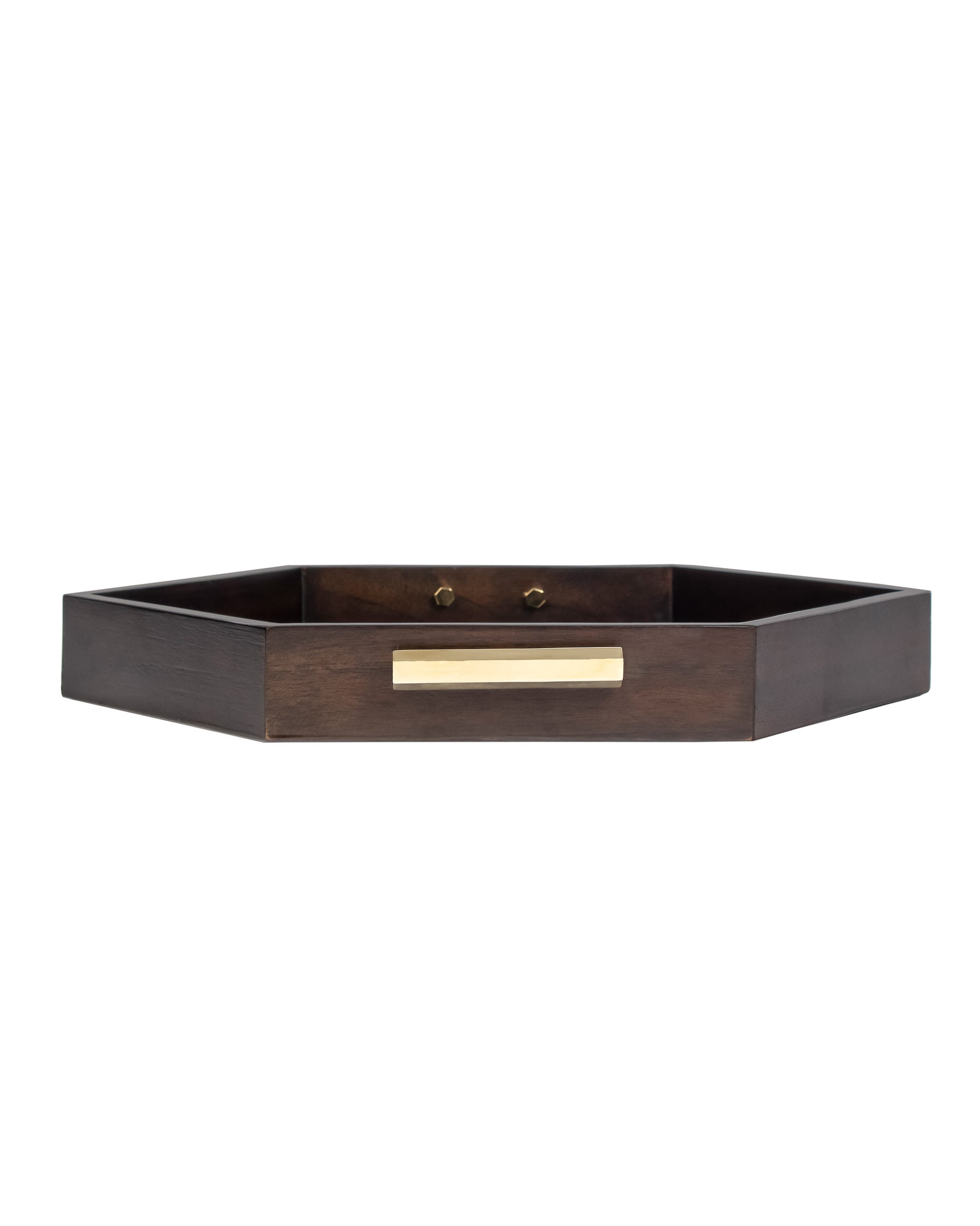 Adding their lavish tone, Hex trays make an elegant addition to your serve ware collection. This classic tray comes in a matt wood finish paired with polished Brass handles and harmonizes with your present serve ware collection.