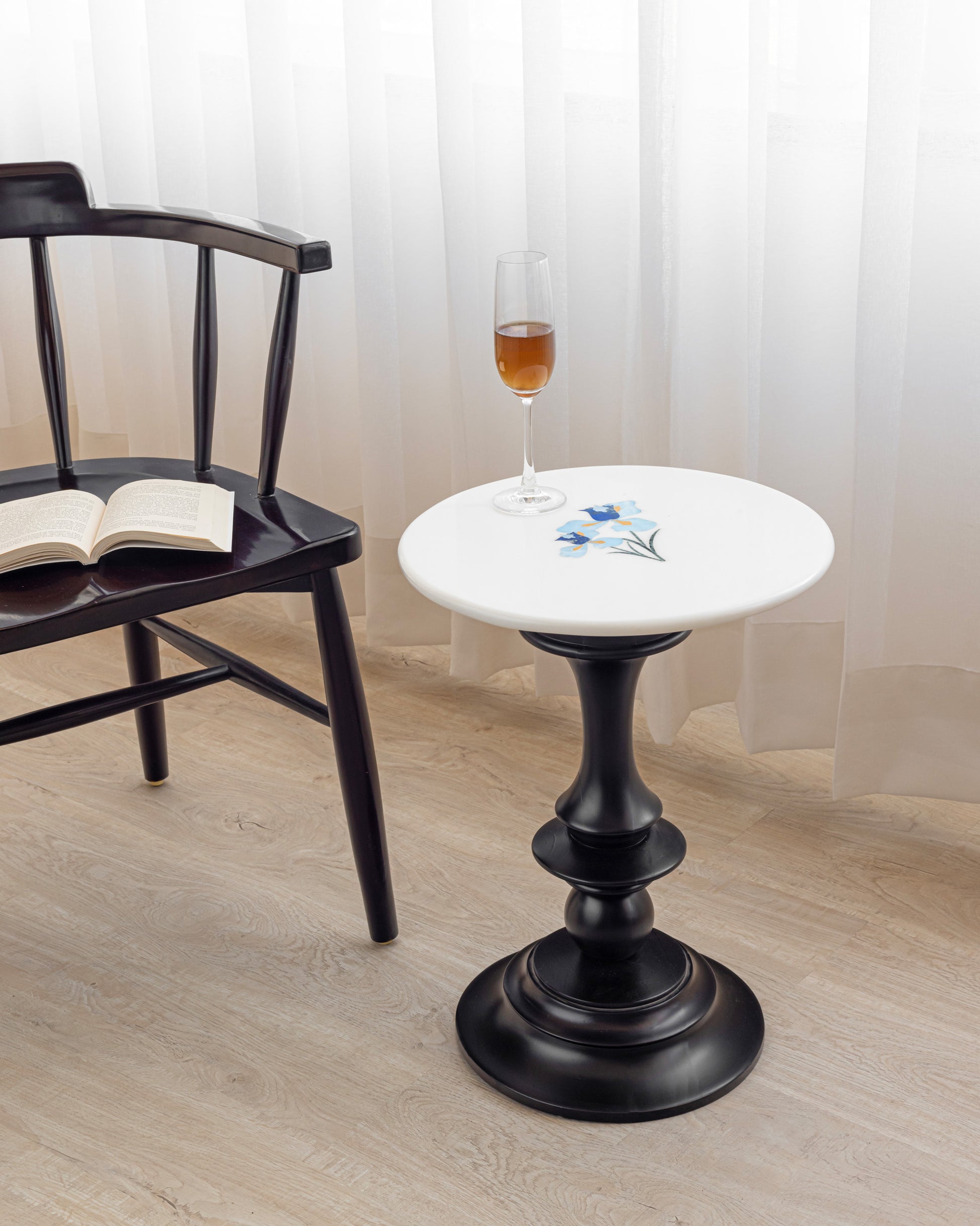 Finish: Polished marble. Matt black finish wood