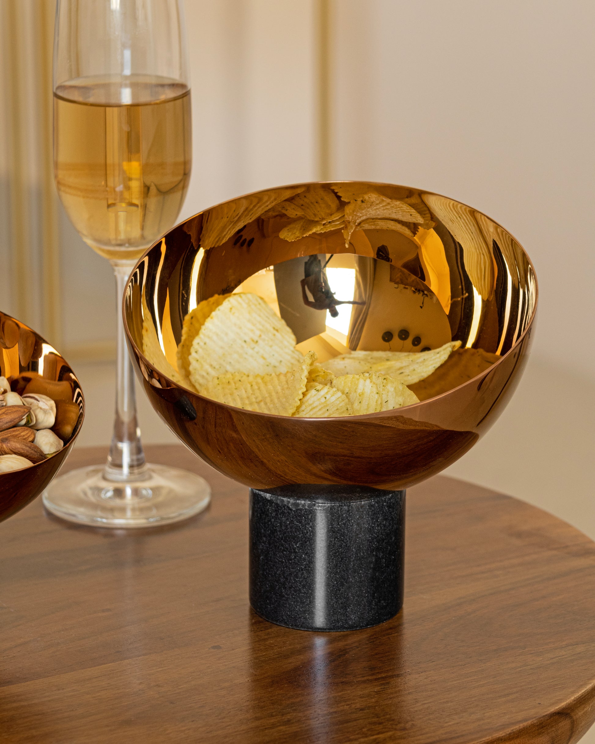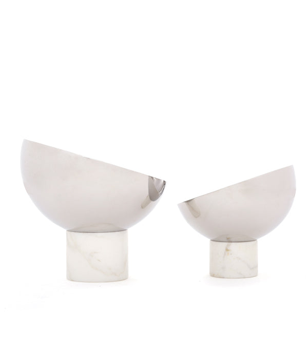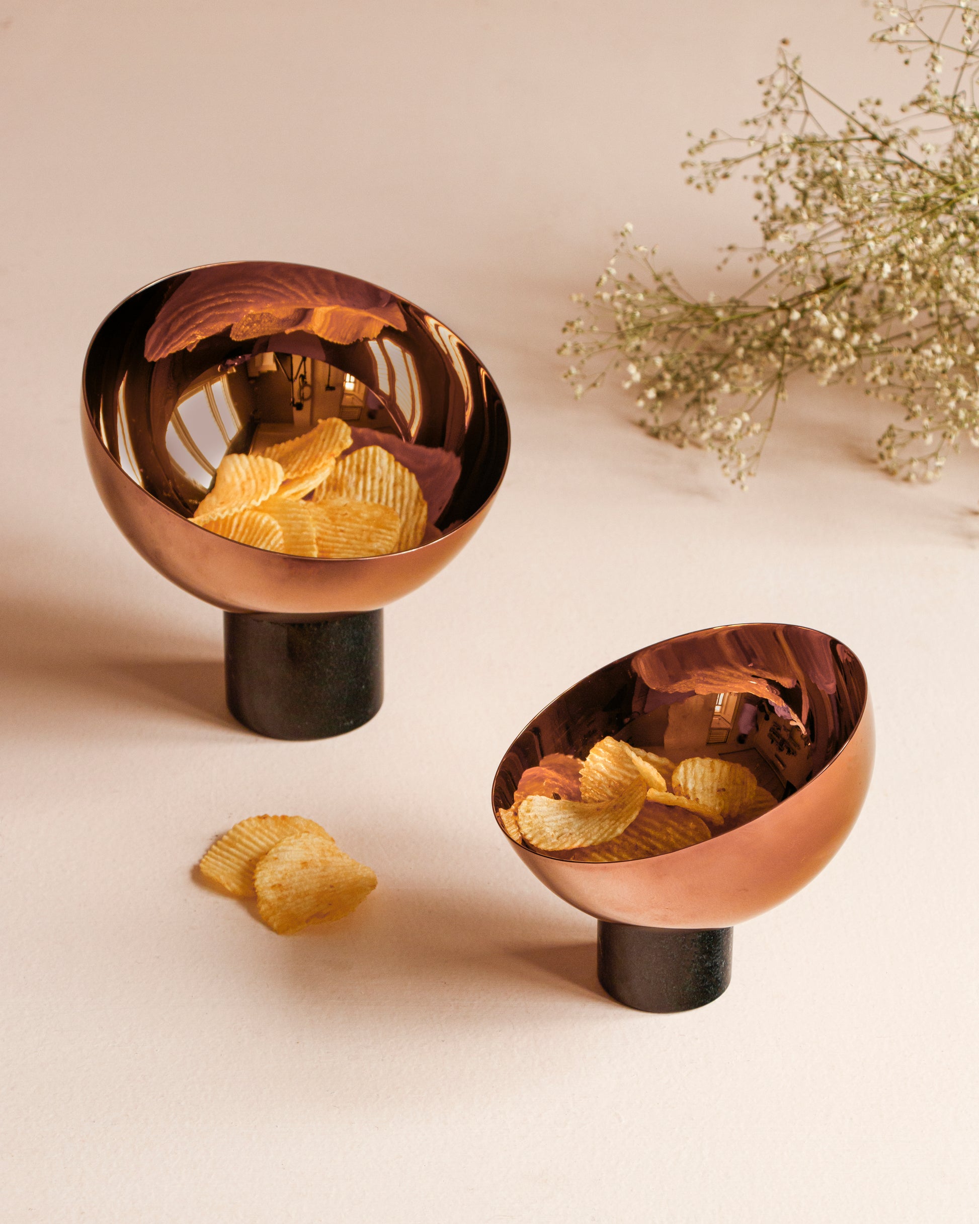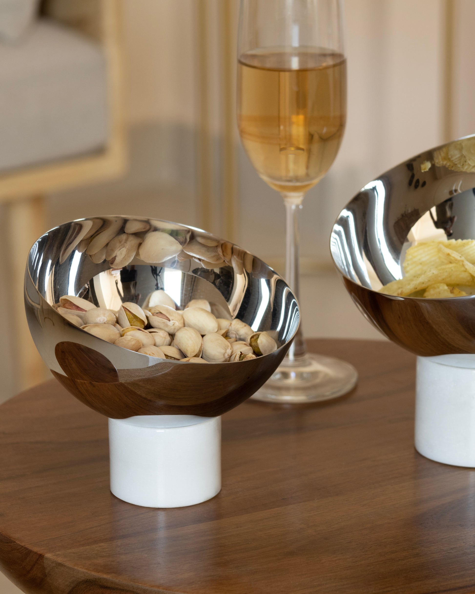 This delicately formed serve ware is made in fine stainless steel and polished white marble. Offering a richness that flaunts a beautiful mirror finish, Para Bowls are an ideal choice for serve ware that marks its presence.