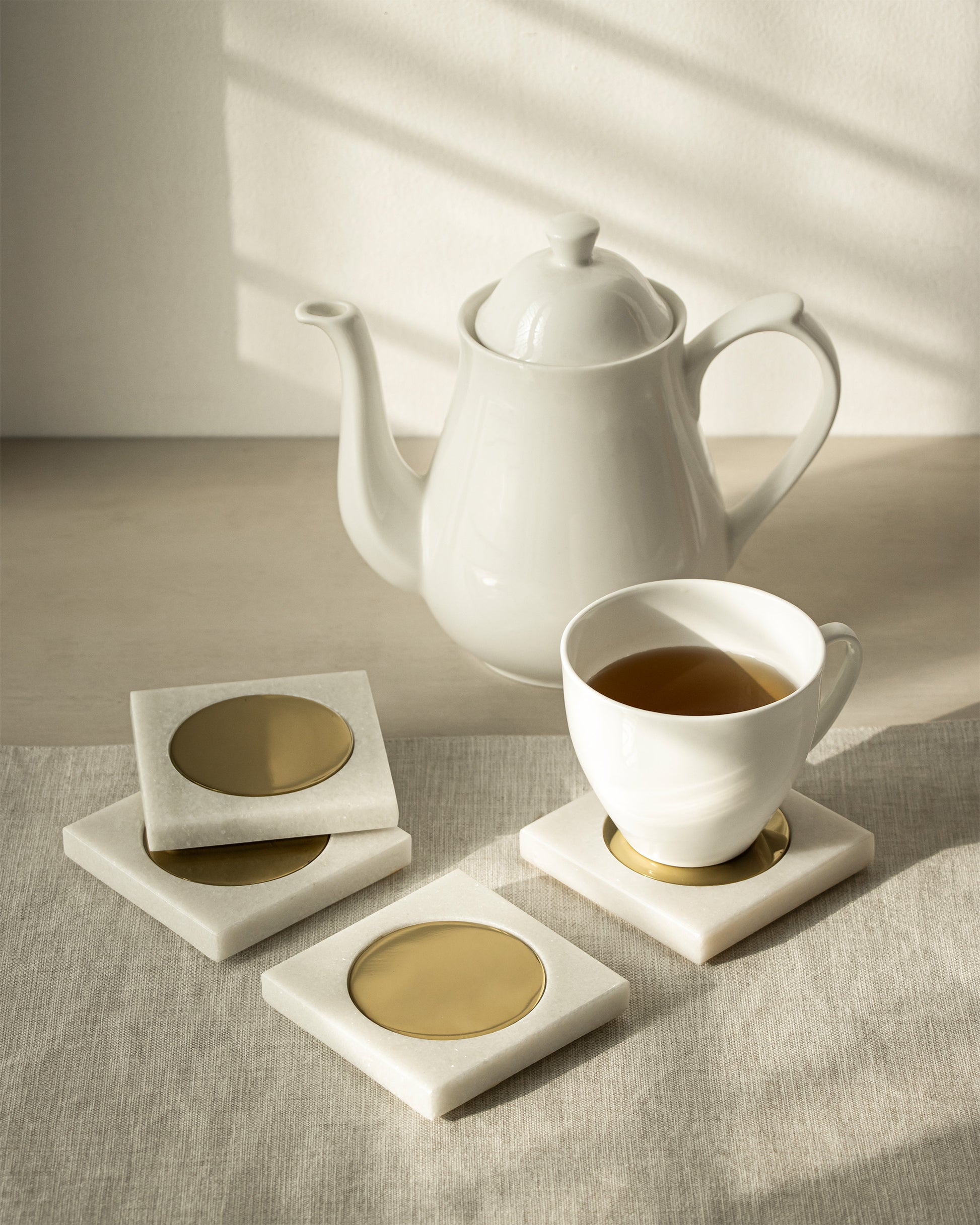They come in a set of four as an excellent add-on to your tableware. They have been crafted using fine-quality white marble and stainless steel. Naturally veined, they look lovely when peppered around nesting tables and add that natural touch you've been yearning for. Don’t worry, they do not create any scratches on tables.